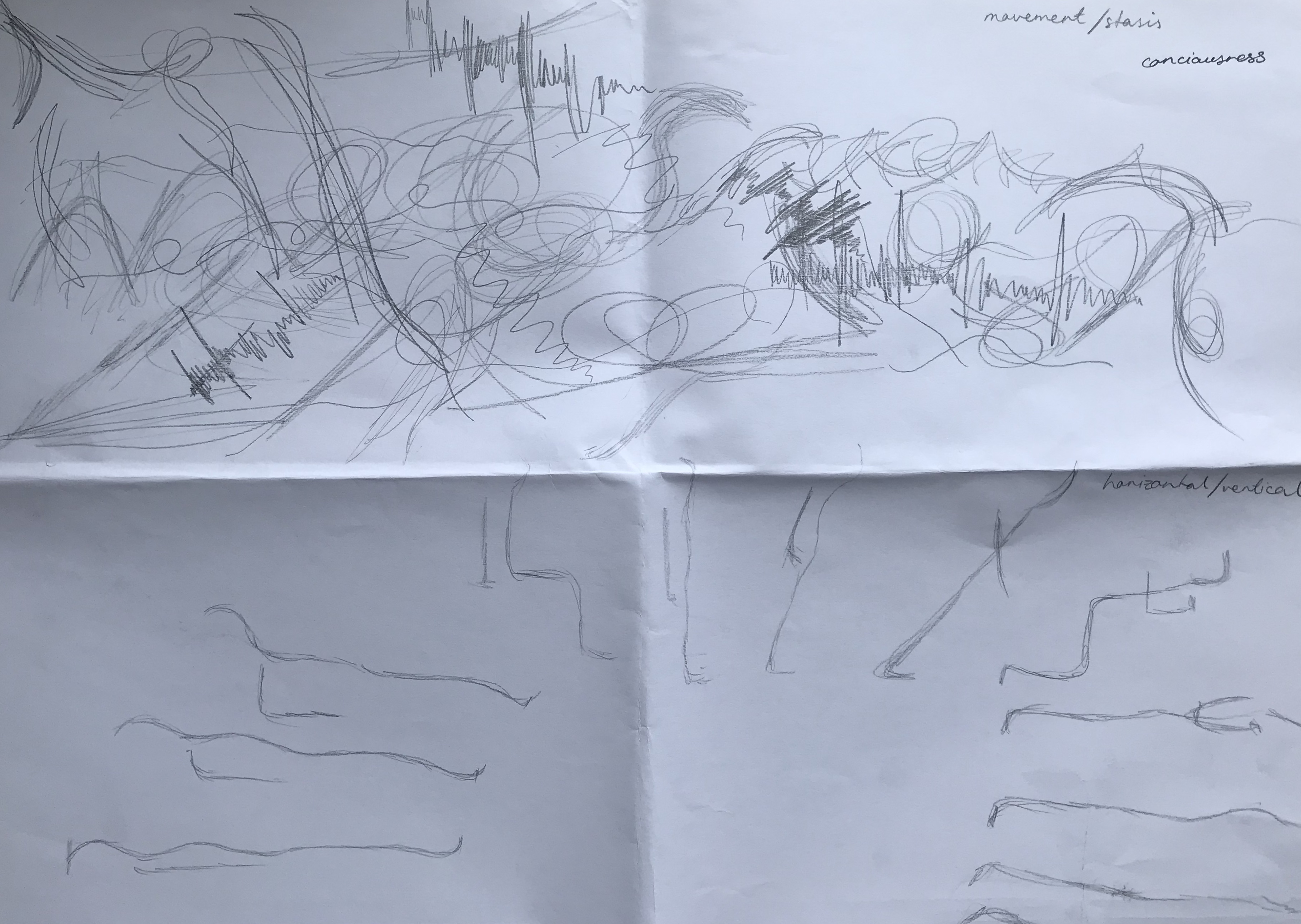 I was nervous to begin this exercise and at first it was difficult to sit in a room of strangers with eyes closed and to draw. However once I started I found that it was much easier with eyes closed than open. I think this is because there isn’t any expectations when they’re closed. It doesn’t have to look good, but it is an honest and raw representation of how you think, feel and imagine things. Drawing with my eyes closed gave me a sense of freedom to not worry about how my image was turning out.