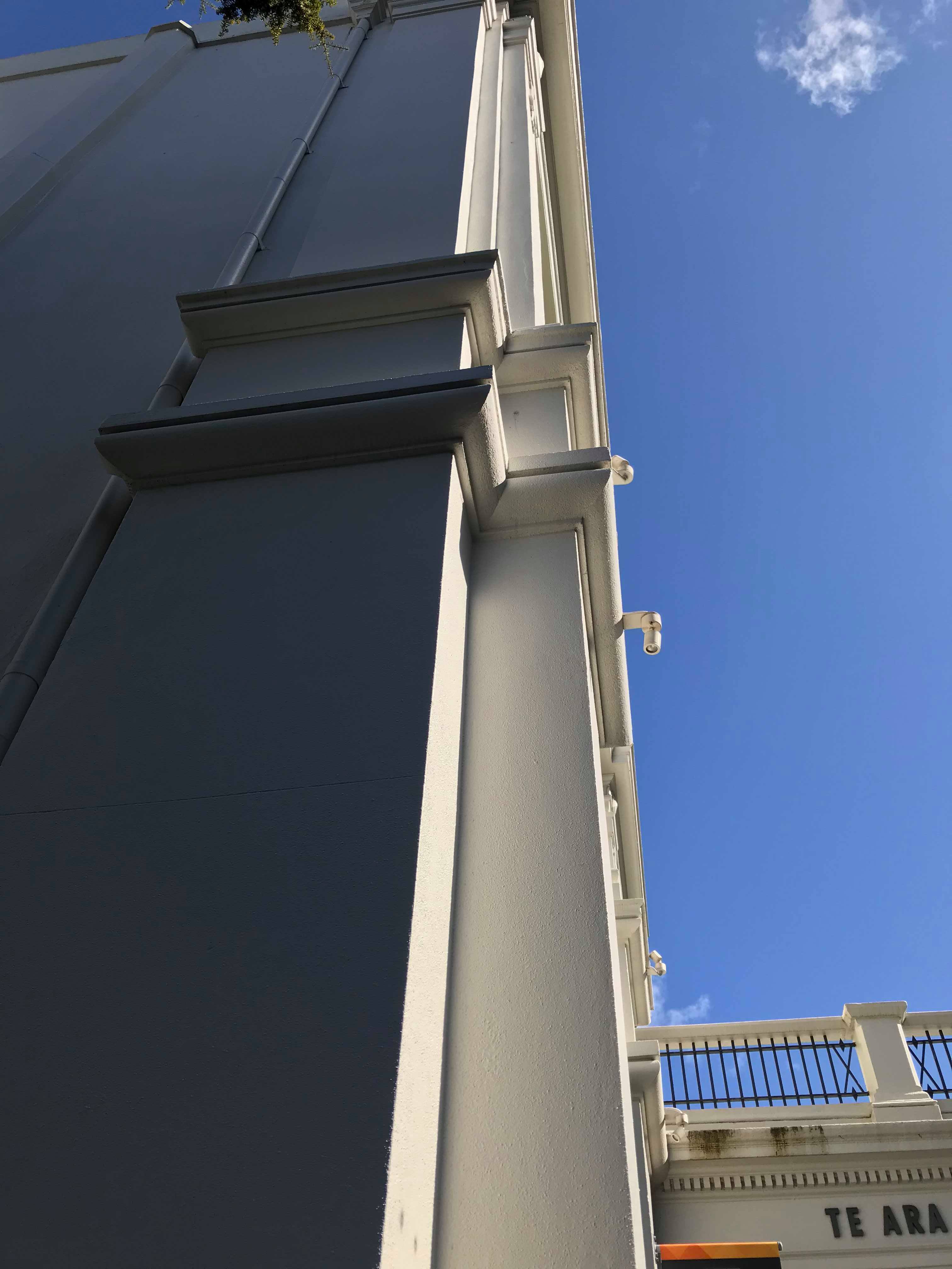 Being both interior and exterior we measured around the building and viewed it from the outside as well as in. The exterior and interior had very different feelings to them. The exterior was noisy and busy as it is in a public space right next to the road. The building exterior is also quite strong and almost harsh looking being a tall stone structure. Everything is very lineal and designed in a very “European” way. The interior is in comparison very quiet and subdued. Towards to back of the space there is minimal light and I found this to be a very relaxing space to be in. Towards the front, near the street facing window the room is filled with a soft light that filters naturally through the space.