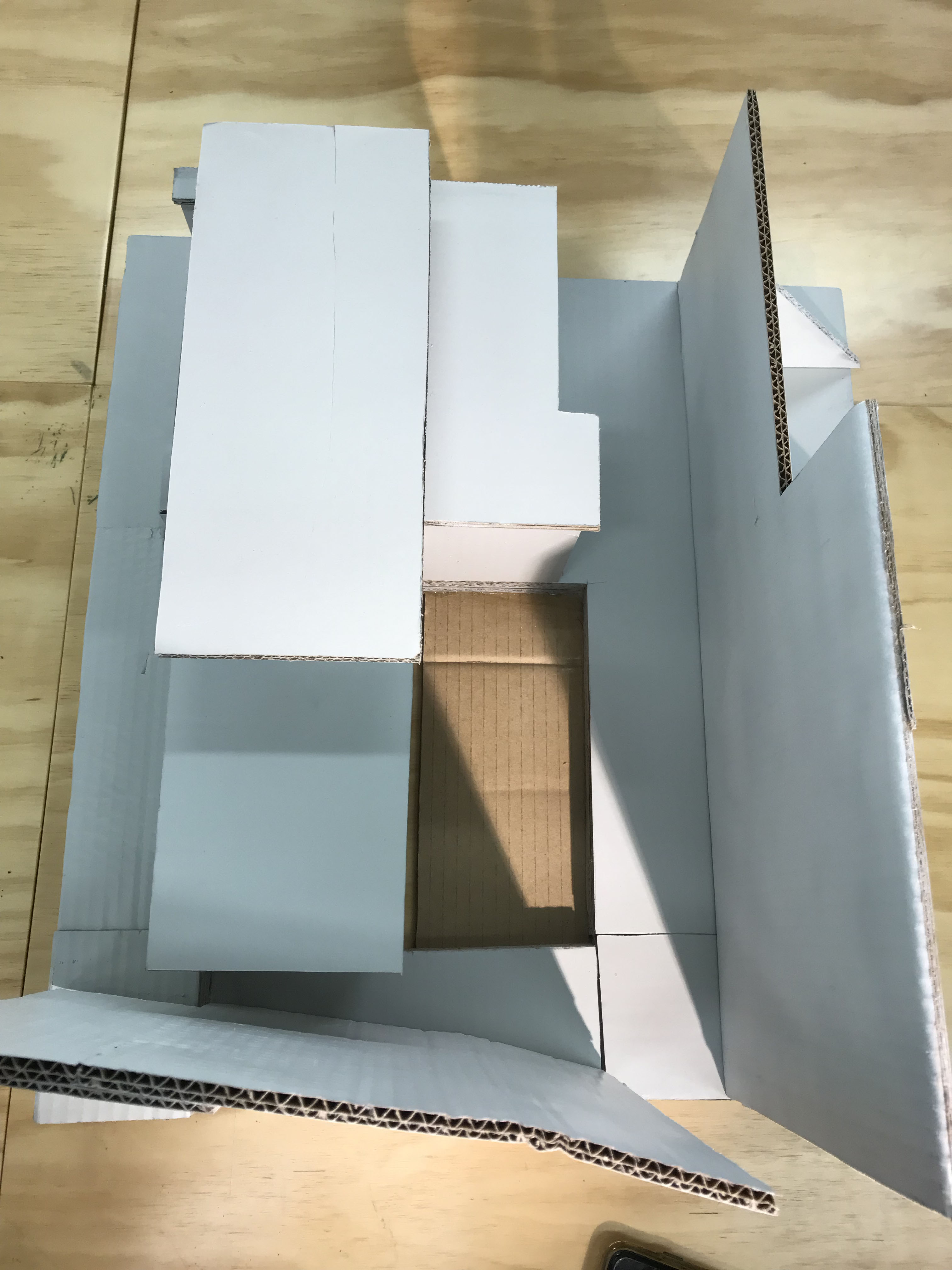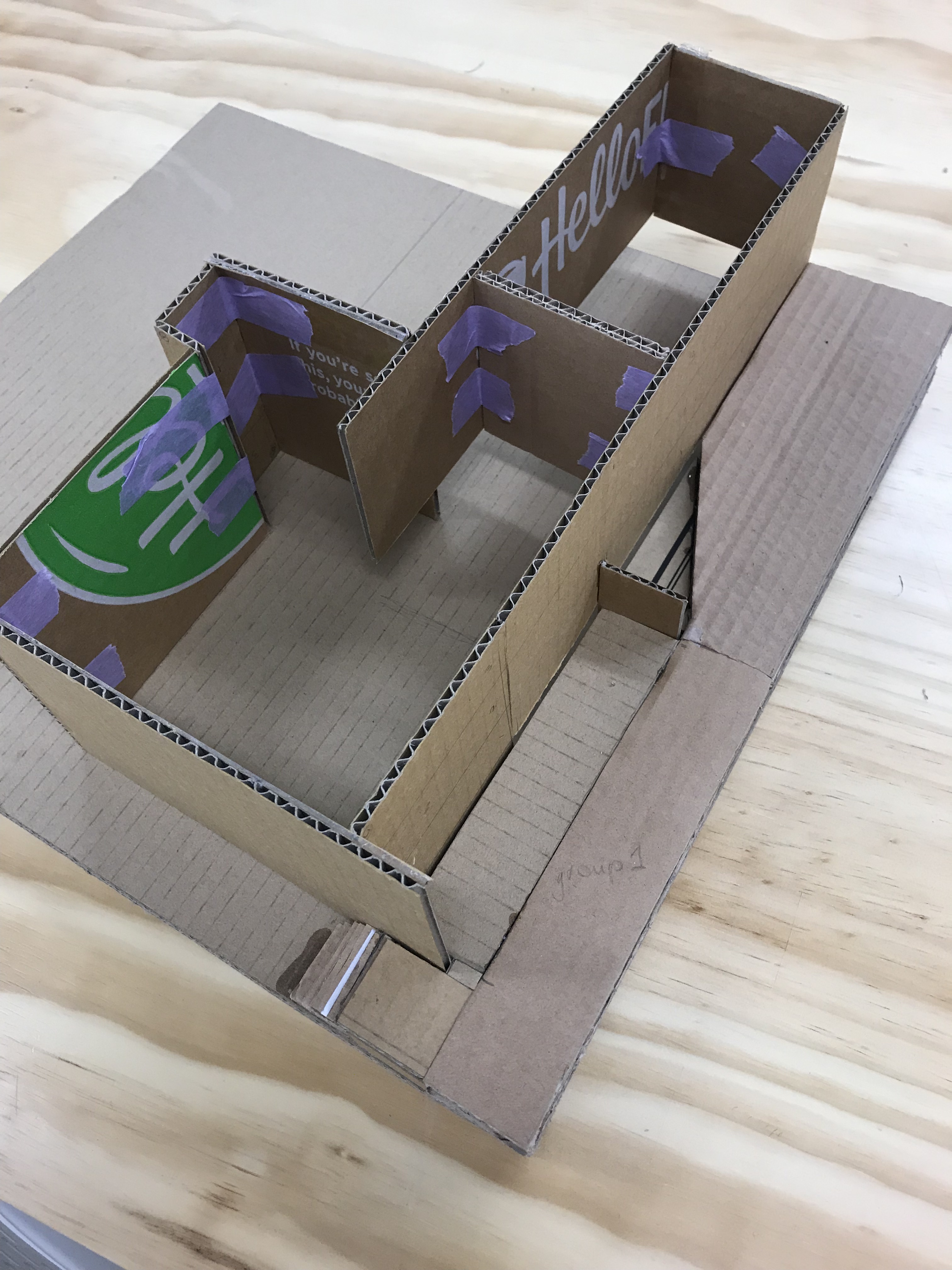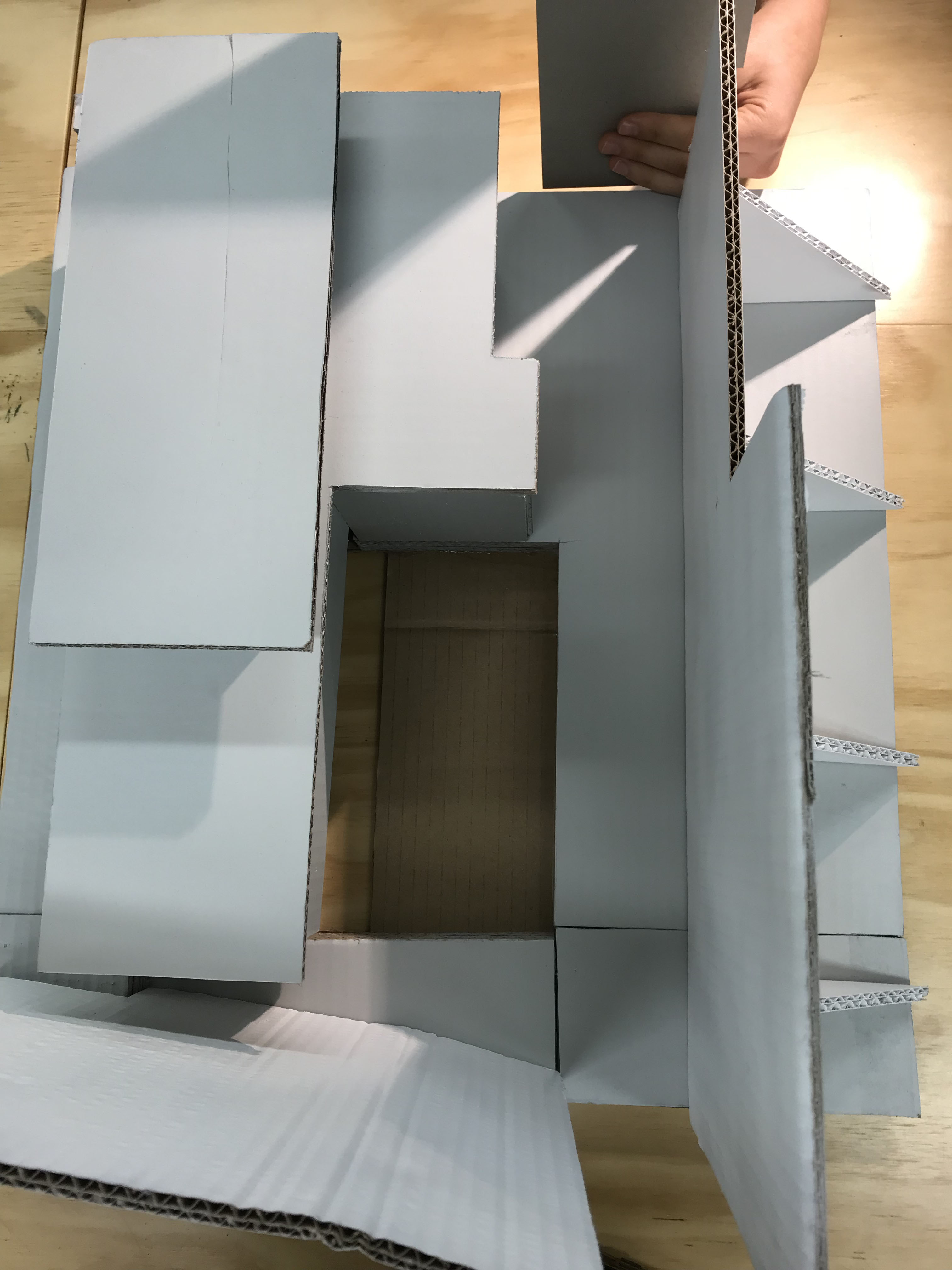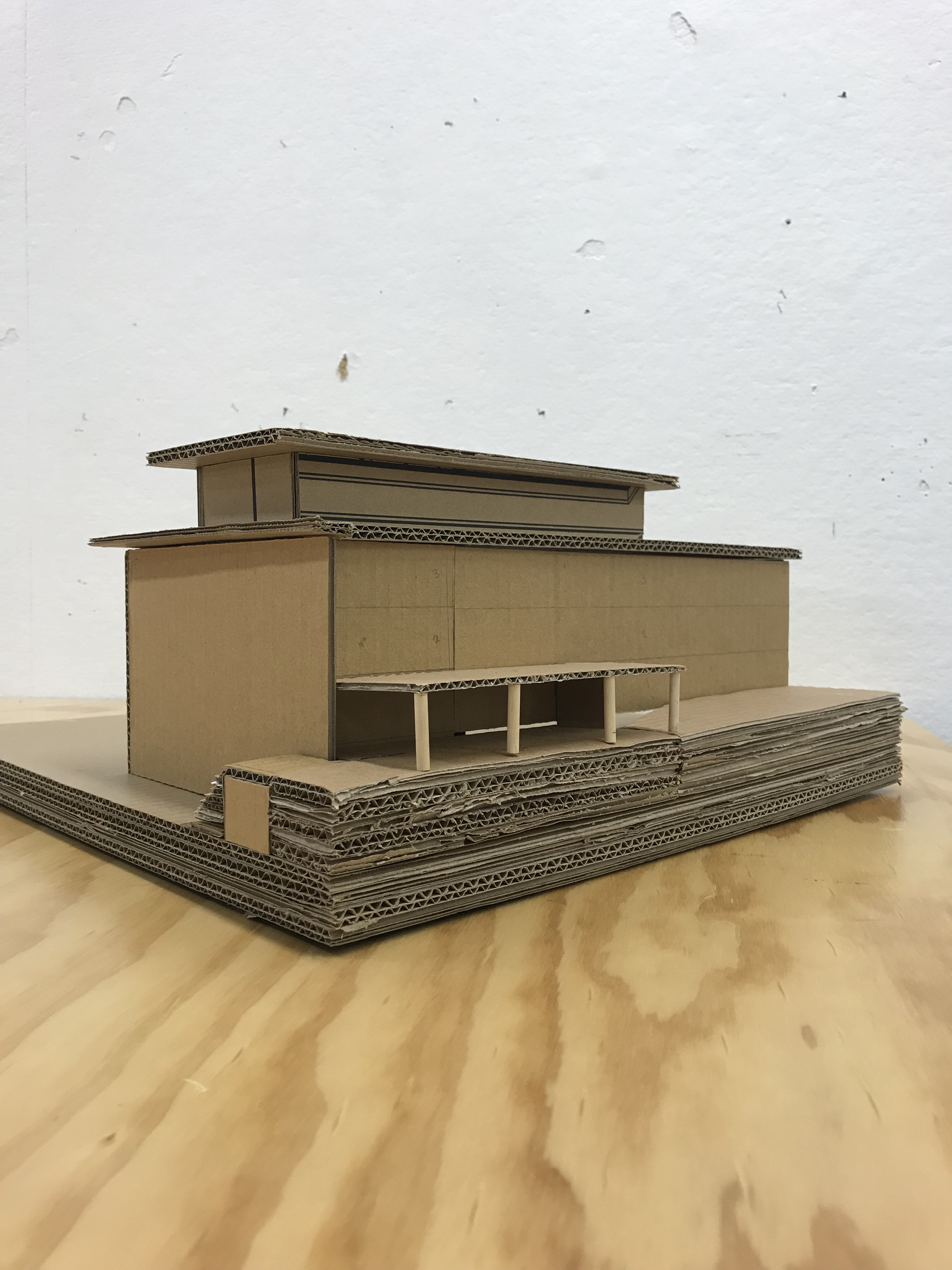 During class we made a start on our site model by working out the dimensions we would need for the base board and land contours. We decided on using plain old cardboard as its easily accessible, cheap and recyclable at the end of the project! As a group we started to cut out the pieces and stick them together to create the landscape for the model to sit in. After leaving it to dry over night we started to paint it using a combination of colours to try and achieve a realistic look of the original site.