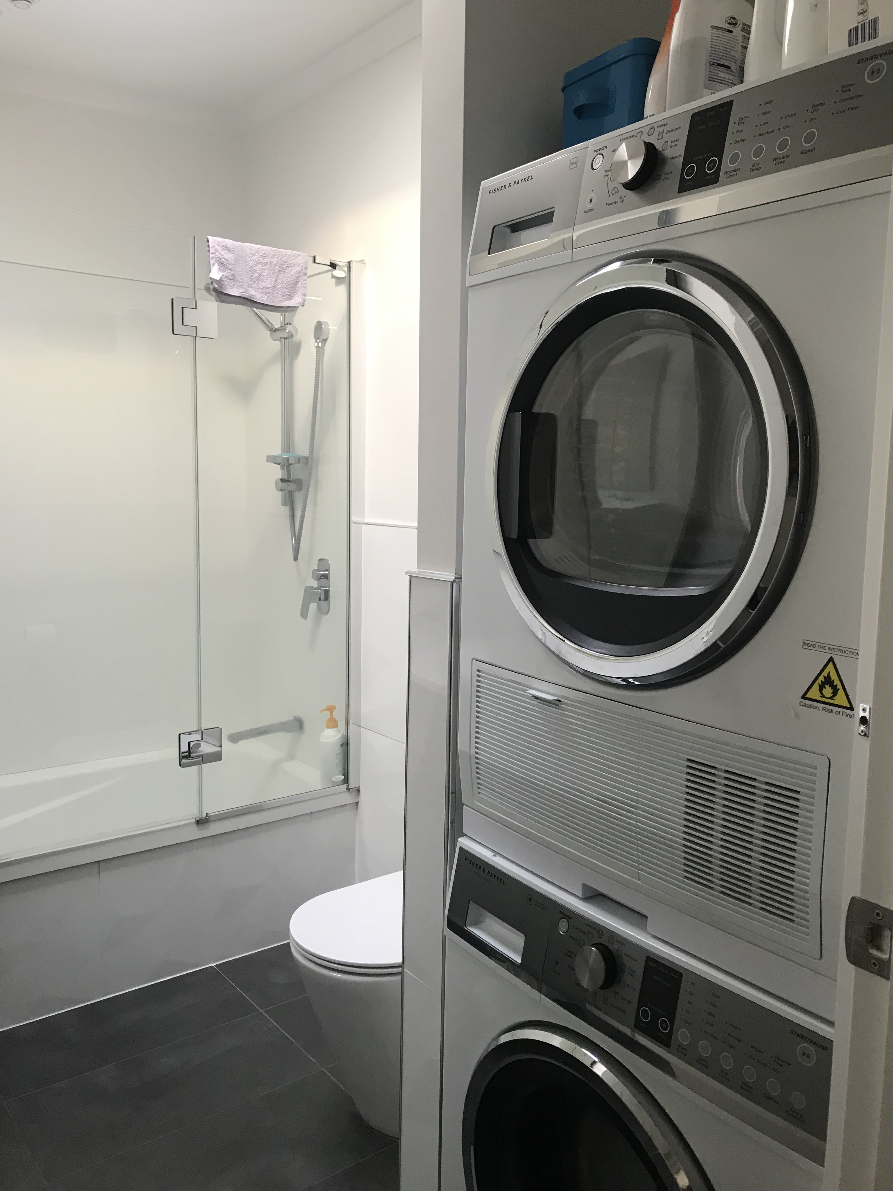 My bathroom also doubles as the laundry. As you walk in immediately to the right is the washing machine and dryer which can make the room both noisy and very warm if the dryer is on. As there are no windows in the bathroom we have a fan to help with circulation this adds a lot of noise when turned on but is necessary to use. The surfaces in the space are usually a bit cold but not necessarily uncomfortable. There is a heated towel rail and the water heats up very quickly (big plus!). When the fan and dryer are off I would consider it to be quite a tranquil space as it’s very quiet apart from the running water. There is only one entrance to the room, through the door, which has a lock making it feel very secure.