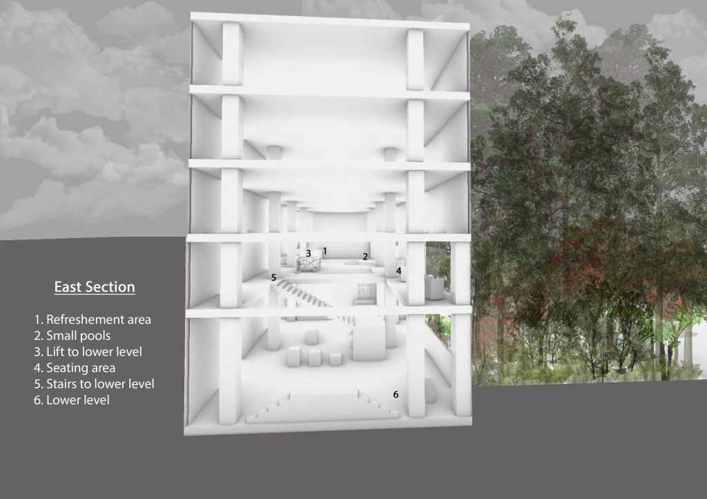 I decided to do my sections on a perspective view as it allows for more depth compared to a flat section in the Rhino software. Using the perspective lens allows us to see more of the space and get a better understanding of it.