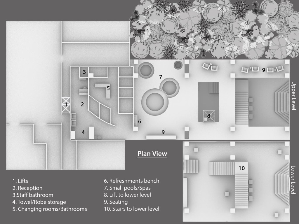 Moving on from my initial hand drawn plan and model I started to work on a digital model of the space. To better show my space I worked on creating plan and section views using a combination of Rhino and photoshop. These programs allowed to to show clear and precise plans of the space. I chose to finish them in a monochromatic look to keep them simple and easy to read.