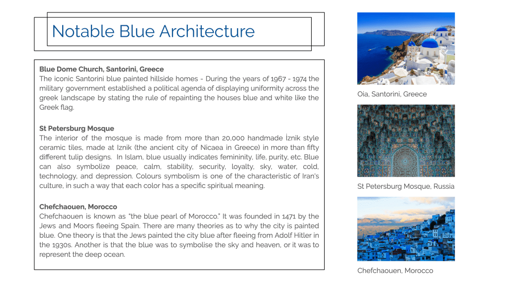 Below is my groups presentation slides “The Histories of Colour in Relation to Spatial Practice: Blue”.