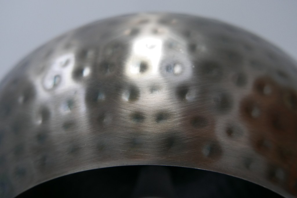 I decided to take a photo of a light shade that hangs above the kitchen counter in my apartment. As the sun moves outside the kitchen windows, the light across the surface warps and shifts around the indented pattern. As the light shifts the colour slightly changes too. It’s cold to touch and despite the surface looking as if it would be kind of rough and scratchy it is actually very smooth to touch.
