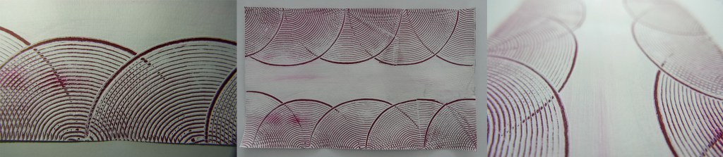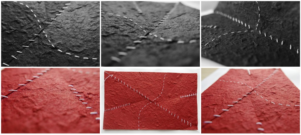 My third surface was an already textured paper that I then sewed over top of to create layers and manipulate the natural curvature of the paper. Having cut into the paper at certain spots and then sewing it back together, the paper was able to bend and flex in different directions and then also return to its original shape giving the surface a sense of fluidity and movement.