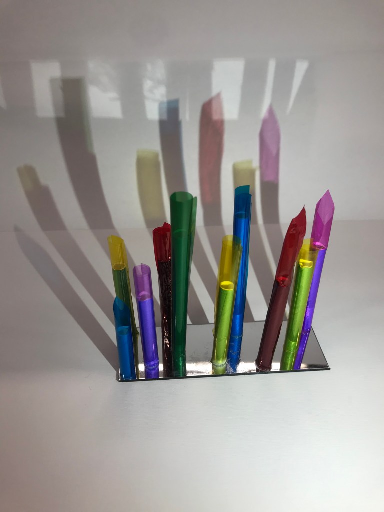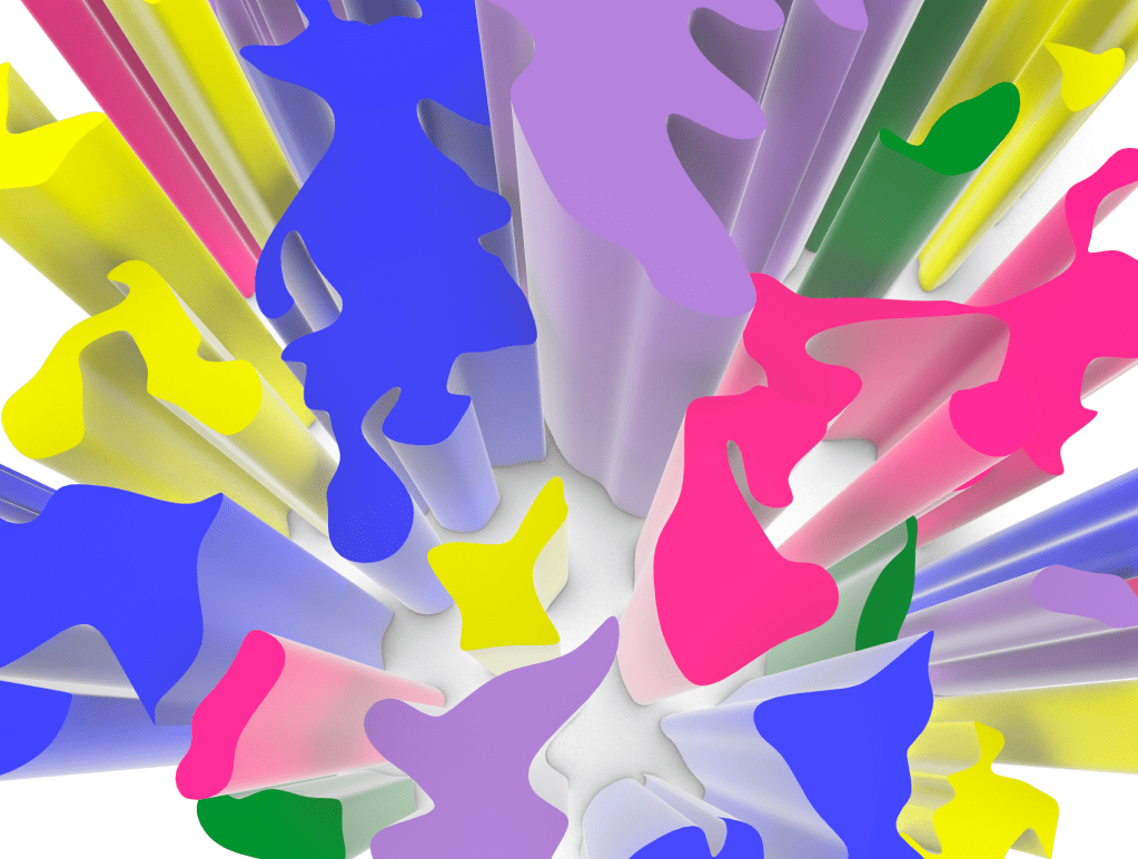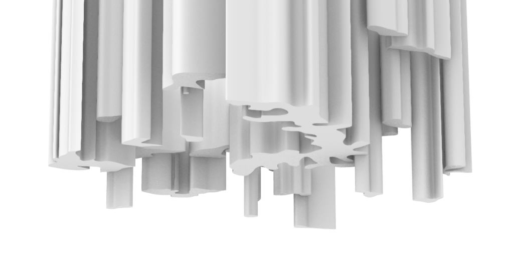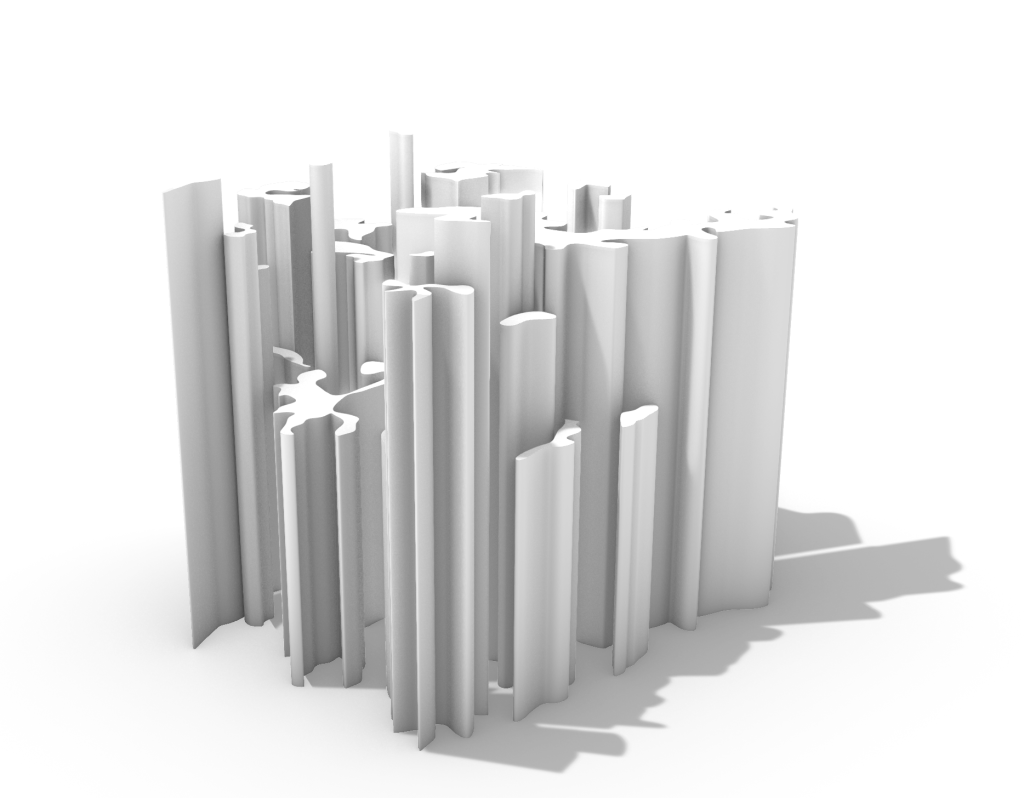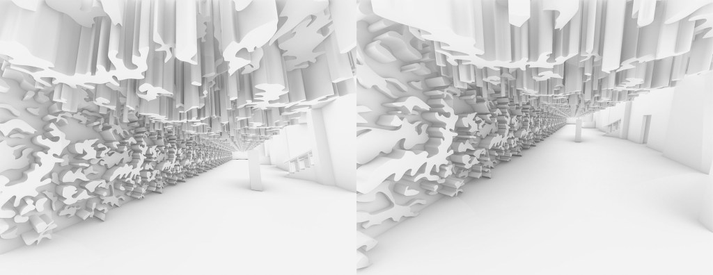 The first model I created in week 4 I imagined as an installation that people could walk through and the coloured beams could be manouvered through or potentially pushed aside (dependant on material). Alternativley it could also be a ceiling or wall treatment and act in a similar fashion but this was an idea I wanted to look at further and potentially develop.
