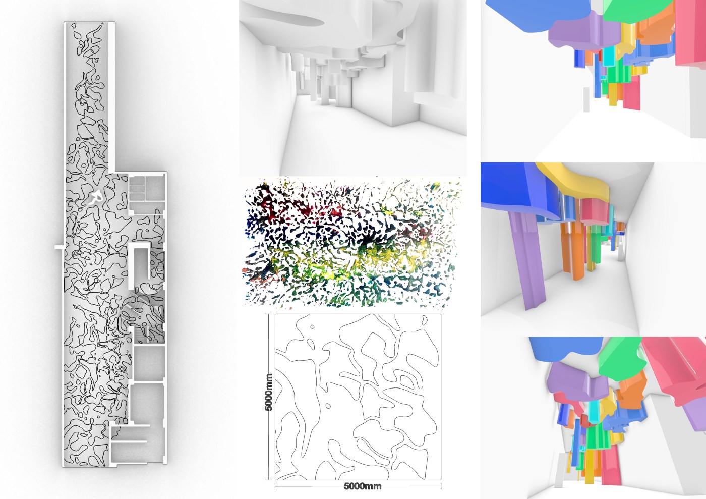 After creating a series of surfaces in week 5 I started to look at how I could apply to them to site. I knew from early on that I wanted to create an installation in the space and an exercise we did in week 4 – models based off our artist models work- had given me a few ideas of roughly what I wanted to create.