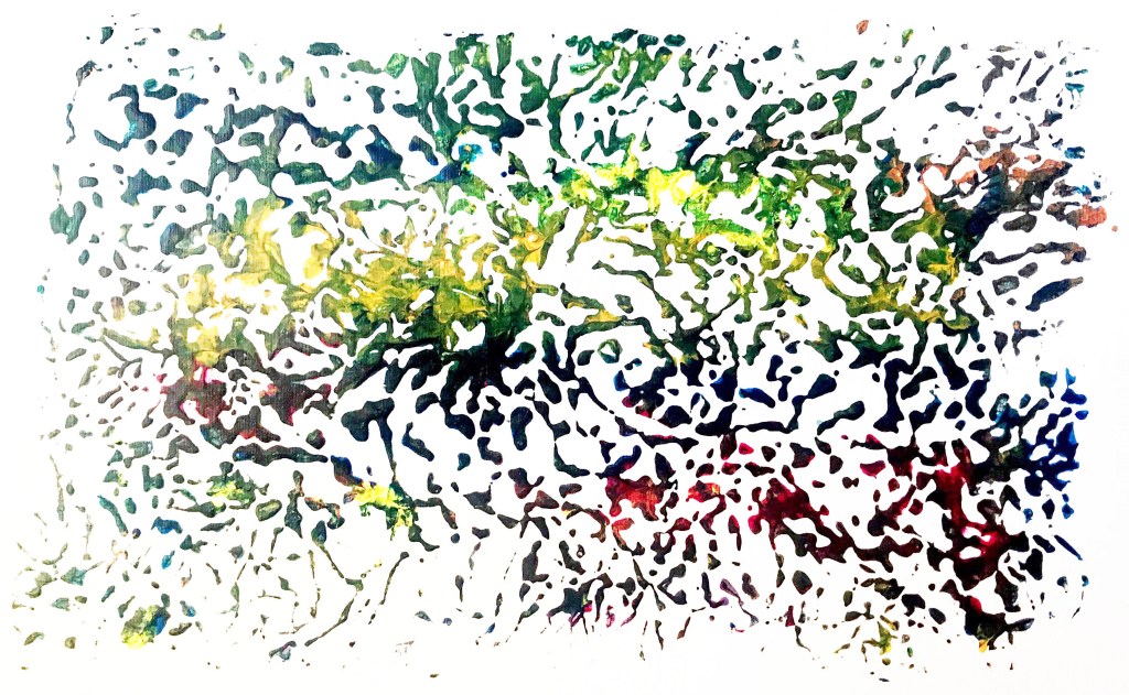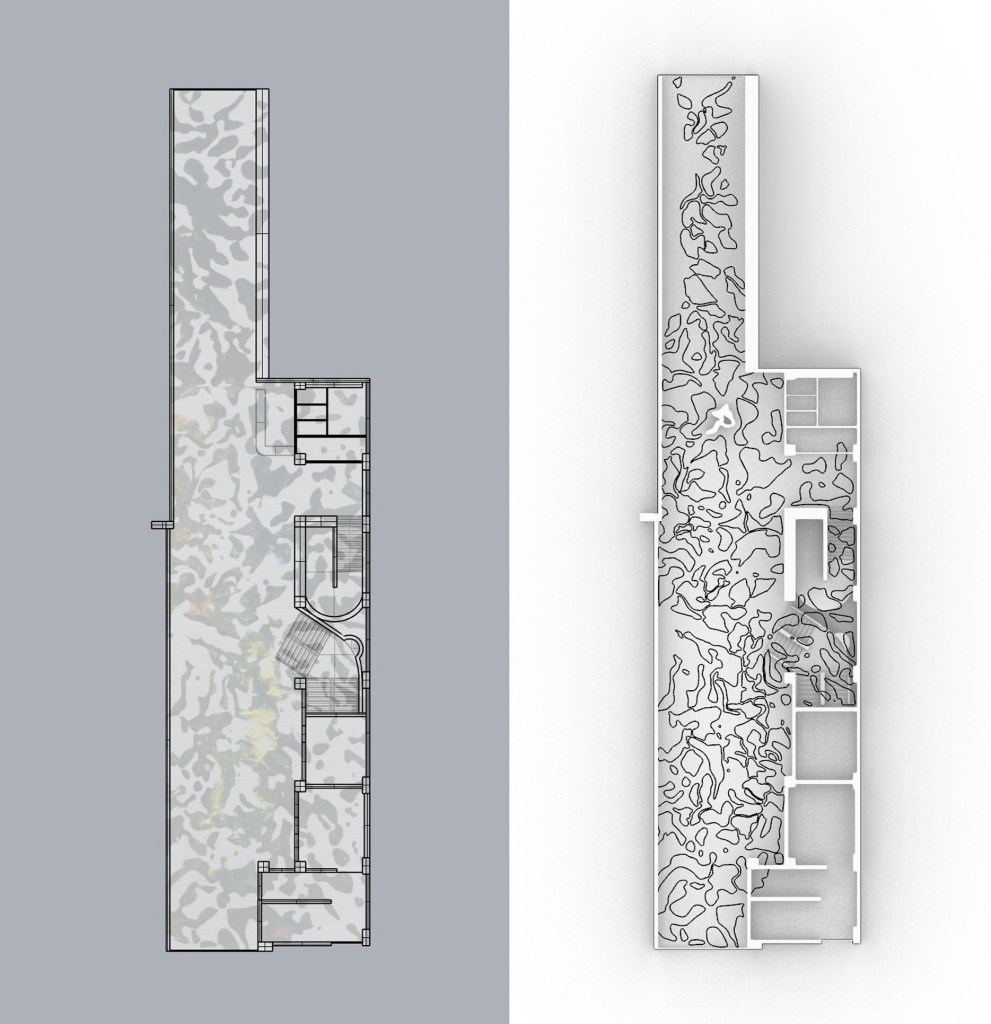 Moving on from the first design, I scaled up the original image that I drew over to fit the whole length of the site. Once I had the size right I went back in and traced over/around the painted surface to create a different series of line work. I much prefer how this one turned out. The spacing and size is more abstract and I prefer how there isn’t repitition in throughout the space.