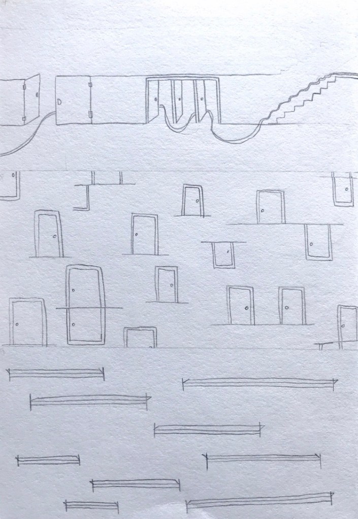 I began by noting down the connections between the interior surface and the relationship between the internal/external threshold and passage. From this I created 10 conceptual sketches that I thought could relate to the connections I had discovered.