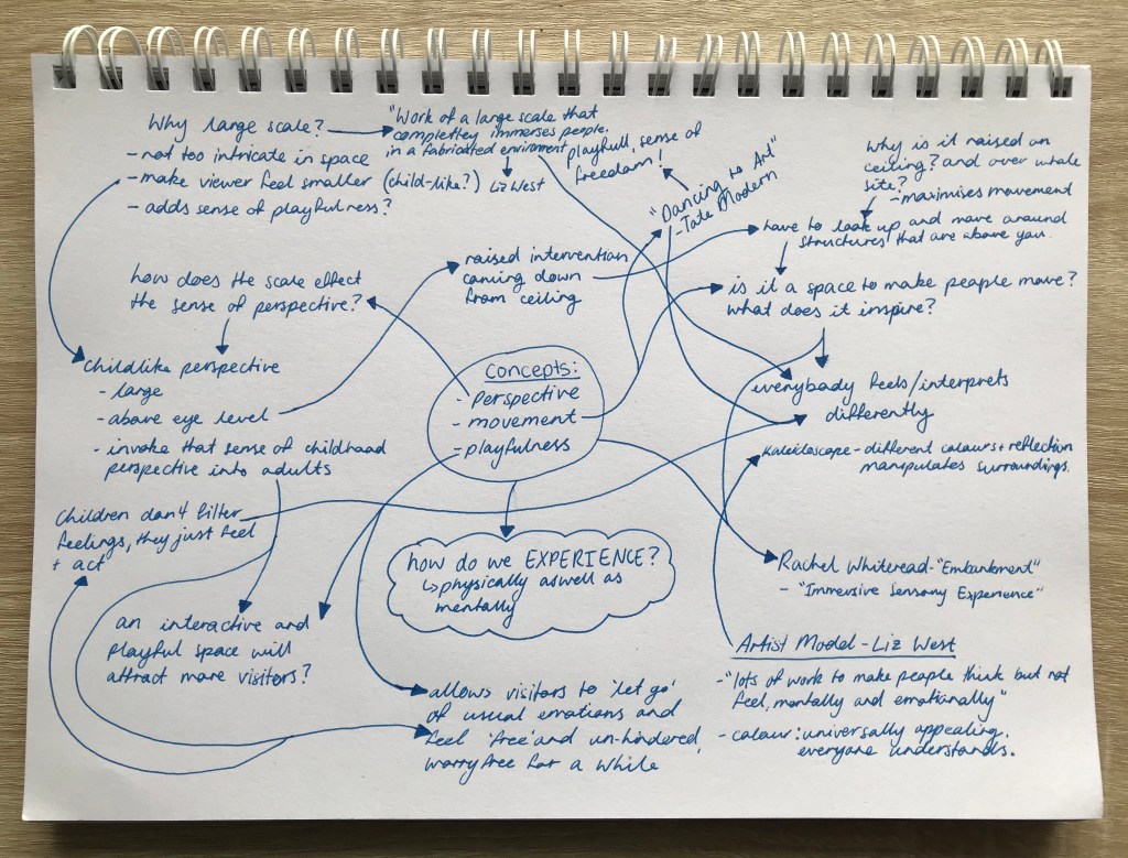From the artist model workshop I noticed the reflective qualities, colour and structural quality of models I made. The inspired me to create an intervention that can be moved through and experienced with the whole body instead of just the eyes.