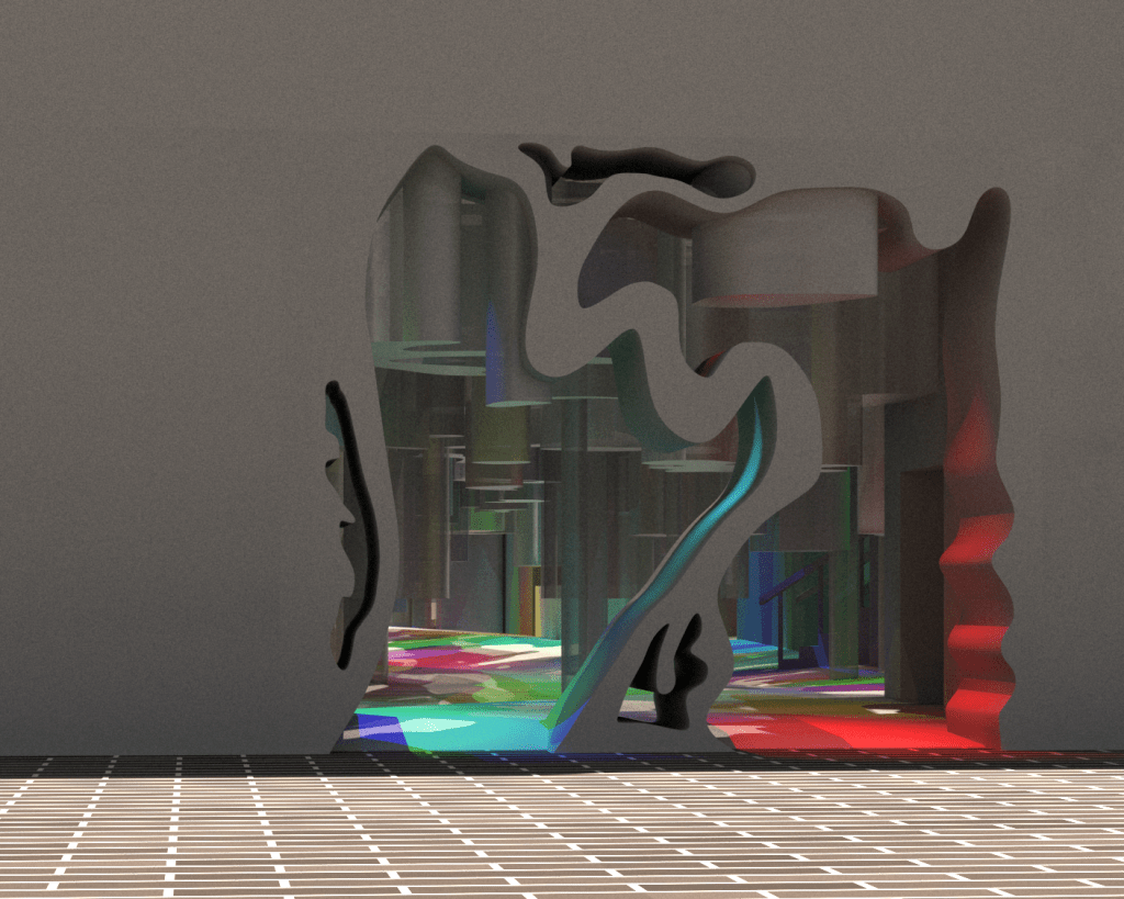 I was pleased with how the final design came out and I think it captures the concepts I was working with well. I wanted the entrances to be flush with the exterior walls to make it seem as if the design is almost like a cave, carved out of the side of the building. I didn’t want to include doors as I felt it was more of a hindrance given that the space was to function as a walkway. Instead I mimicked the shape of the installation forms and created an entrance that related the the interior of the space.