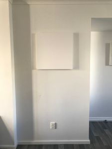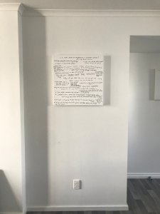 I removed an exisiting piece of art from one of the walls in the ‘dining area’ and replaced it with a blank canvas measuring 30×30. Two black markers were placed on the dining table. Nobody was at home when this happened as both Cory and Tom work full time so the canvas sat untouched for a while. It wasn’t long before something caught my eye, something that shouldn’t be where it was and so the complaints began…