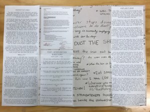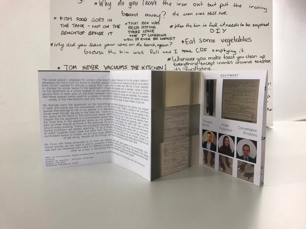 It was mentioned that the booklet felt overwhelming with the amount of text on it but also that the writing was well thought out. I agree that there was probably a bit too much text on the page and this is something I had been mindful of but struggled to reduce further. I will work on this moving forward as I know I can be a bit rambly at times. I do think that this particular intervention required good explanation however, I think I just need to work on finding a balance. There was also a comment around involving colour and shapes to experiment with the visual impact which I think is interesting to consider how this would have translated and how it would have improved the overall look, maybe this is something I can try to incorporate into the next part of the brief.