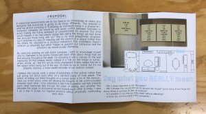 The booklet is a supporting document that outlines the initial proposal, context writing, before/during/after images, equipment used, expectations vs reality, signed agreement, post intervention questions, personal reflection and some additional images. The booklet was predominantly writing but I felt it needed to be to better understand the context of the intervention. There were only so many different images I could take of the canvas itself and the interaction with it in the apartment, so I think the writing was necessary to help the background information be conveyed. I choose to group this information into booklet form as I felt it read better and was an easy way to present all the needed information, similar to the way we use brochures. I didn’t want to have several pieces of lose paper as I felt it would take away from the canvas and people would focus on reading the individual pieces instead of the canvas. If thinking of the canvas as a work of art the booklet is something that could be taken away with the viewer as a momento.