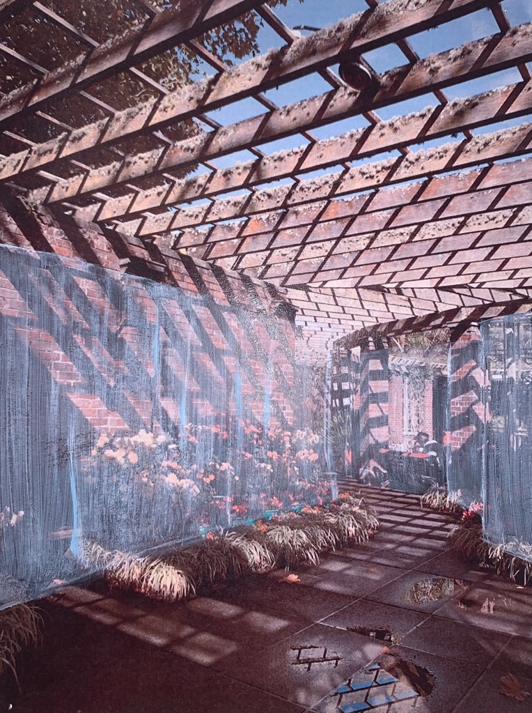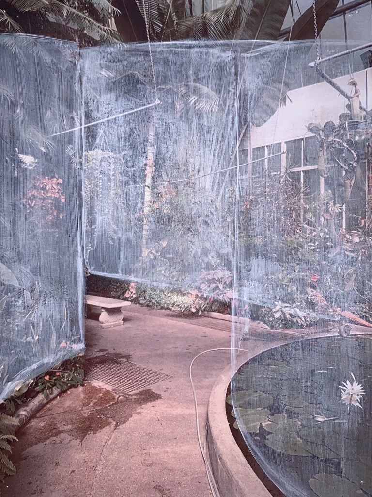 With this idea now in mind I was able to work on plan and section drawings for the formative assessment. I chose to use the heated glasshouse as well as the southern pergola. I chose the heated glasshouse as I liked the way the taller plants would hang over the top of the curtain and the smaller plants would peep out the bottom. In the temperate glasshouse, most of the exhibit is eye level so if I was to cover it up you wouldn’t be able to see anything. The southern pergola I chose to use as it felt kind of bland to me and I wanted to activate the space more.
