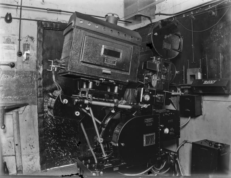 Top Right: Projection Room housing Simplex Projector with Powerlite reflector arc lamp. (1930) Retrieved from: https://collection.motat.nz/objects/89959/old-roxy-theatre