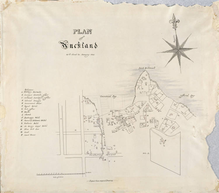 Right: Plan of Auckland (1842) Retrieved from: https://kura.aucklandlibraries.govt.nz/digital/collection/maps/id/439/rec/2