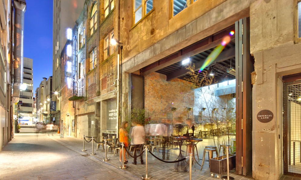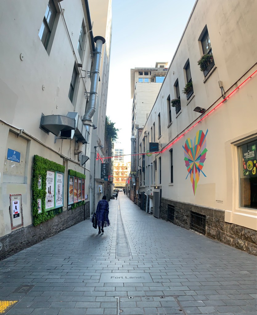 In the Early 2000’s Fort Lane was known as place for crime, strip clubs, brothels and backpackers. In 2010 Auckland city council worked on upgrading Fort St, Fort Lane and Jean Batten Place to create a more pedestrian friendly shared space that would be an important connecting space to the waterfront. Fearon Hay Architects renovated the previously privately owned Imperial Building into a series of public and office spaces, comprised of new bars, cafes and shops. Fort Lane, as it exists now, is a space that transforms from day to night as cafes and traffic give way to a series of vibrant bars and nightclubs. Neon lighting illuminates the current laneway and although the space has been upgraded and modernised it still has a slightly seedy feeling to it, at least in my opinion.