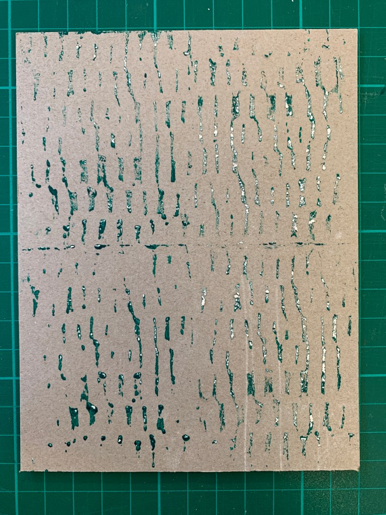 My second surface was a clay slab that I carved a scale like texture into and applied paint and used as a stamp, pressed onto card to create a secondary surface. I like how this design is both a surface itself but can be used to create another surface too.