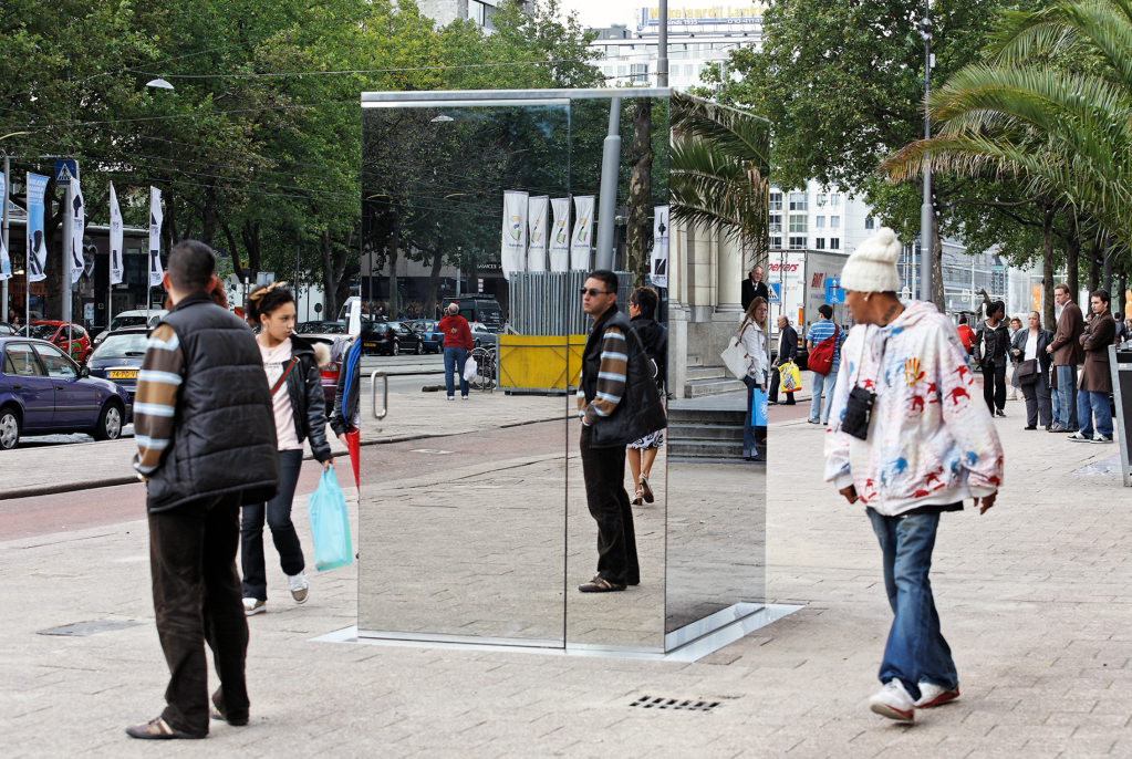 This concept was inspired by Monica Bonvicinis “Don’t Miss a Sec'” (2004) in which she created a public toilet using a two-way mirror glass structure. From the exterior you simply see the reflection and this makes the structure almost blend into the surroundings. Once inside the structure you can see through the walls back out onto the street as if looking through any standard window. I can imagine the experience of using this public toilet would be unsettling despite knowing that people can’t see in.