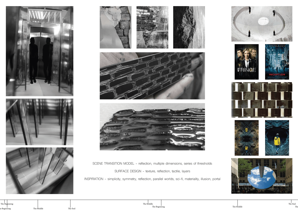My design aims to capture the essence of parallel worlds through science fiction qualities such as reflection, materiality, and tone.