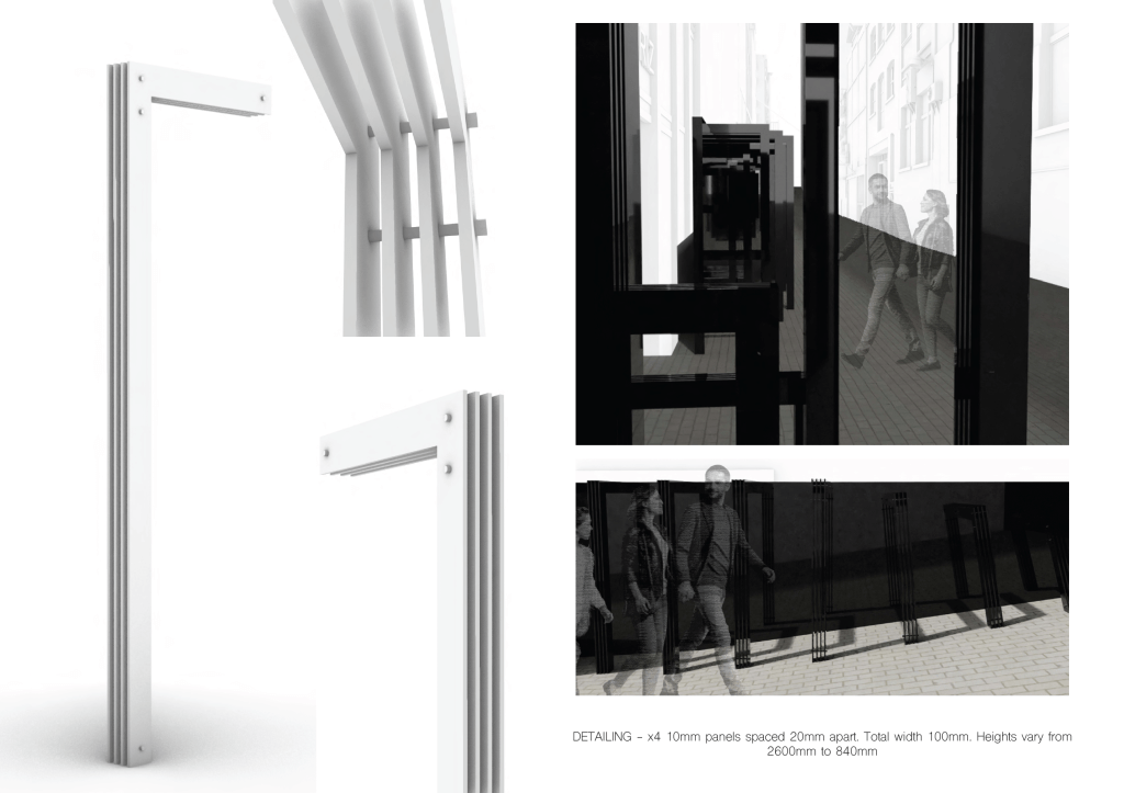 It was suggested that I include and element of lighting into my design also considering how it would change from day to night and what the feeling of the site would be. In terms of materiality, the simplicity of materials/colour was nice but perhaps there could be variation in the finishing of the materials (reflective, matte, satin etc). One of my aims was for people to interact with the design and Lizzi thought that this could be pushed much further by really forcing people to interact. She recommended to bring elements further into the lane in certain parts to force the engagement which I hadn’t considered initially but thought was an interesting idea. Science fiction films are exciting and take you on a journey, usually hooking the viewer in. In this way my design was lacking and needed to be developed further.