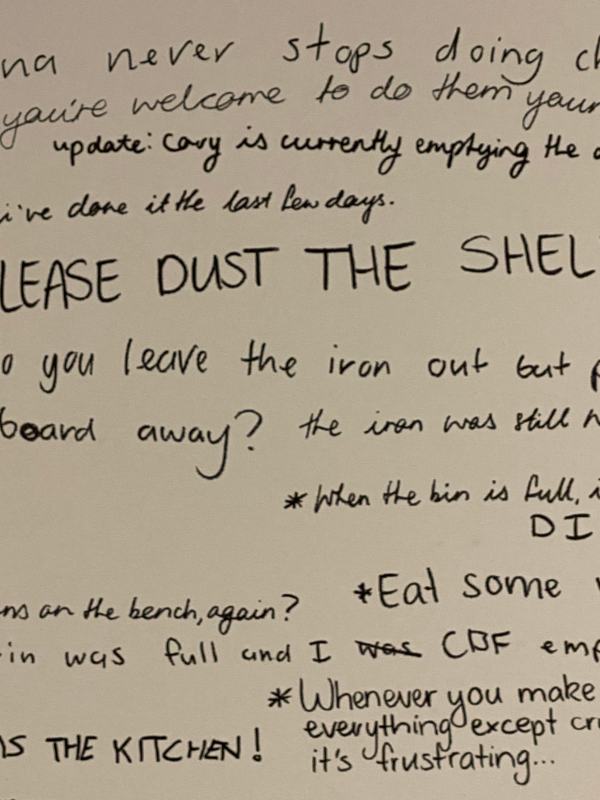 On Friday 4th September I presented my flatmates with an agreement that explained the intervention and stated the rules of it. We all signed it and on the following Monday the intervention began. Flatmate agreement I removed an exisiting piece of art from one of the walls in the 'dining area' and replaced it with... Continue Reading →